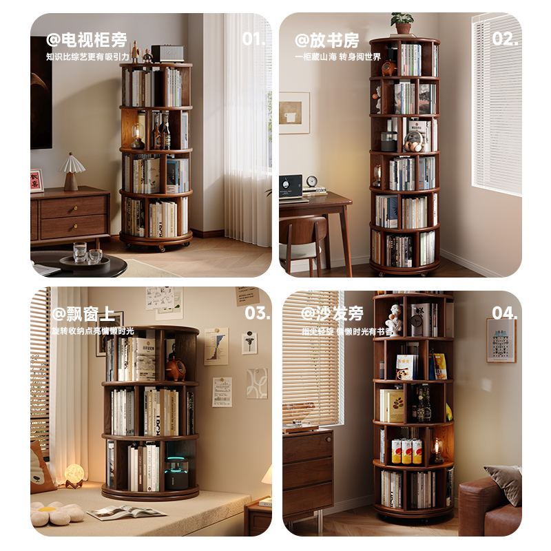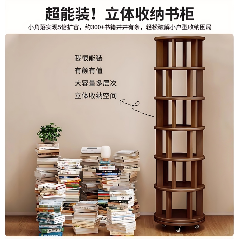 实木旋转书架360度书柜简易家用客厅可移动儿童落地置物架绘本架