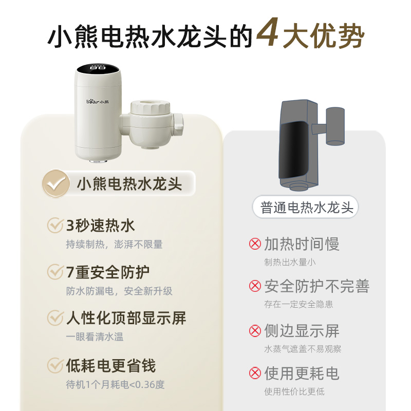 小熊电热水龙头加热器即热式快速过水速热家用小型厨房宝免安装