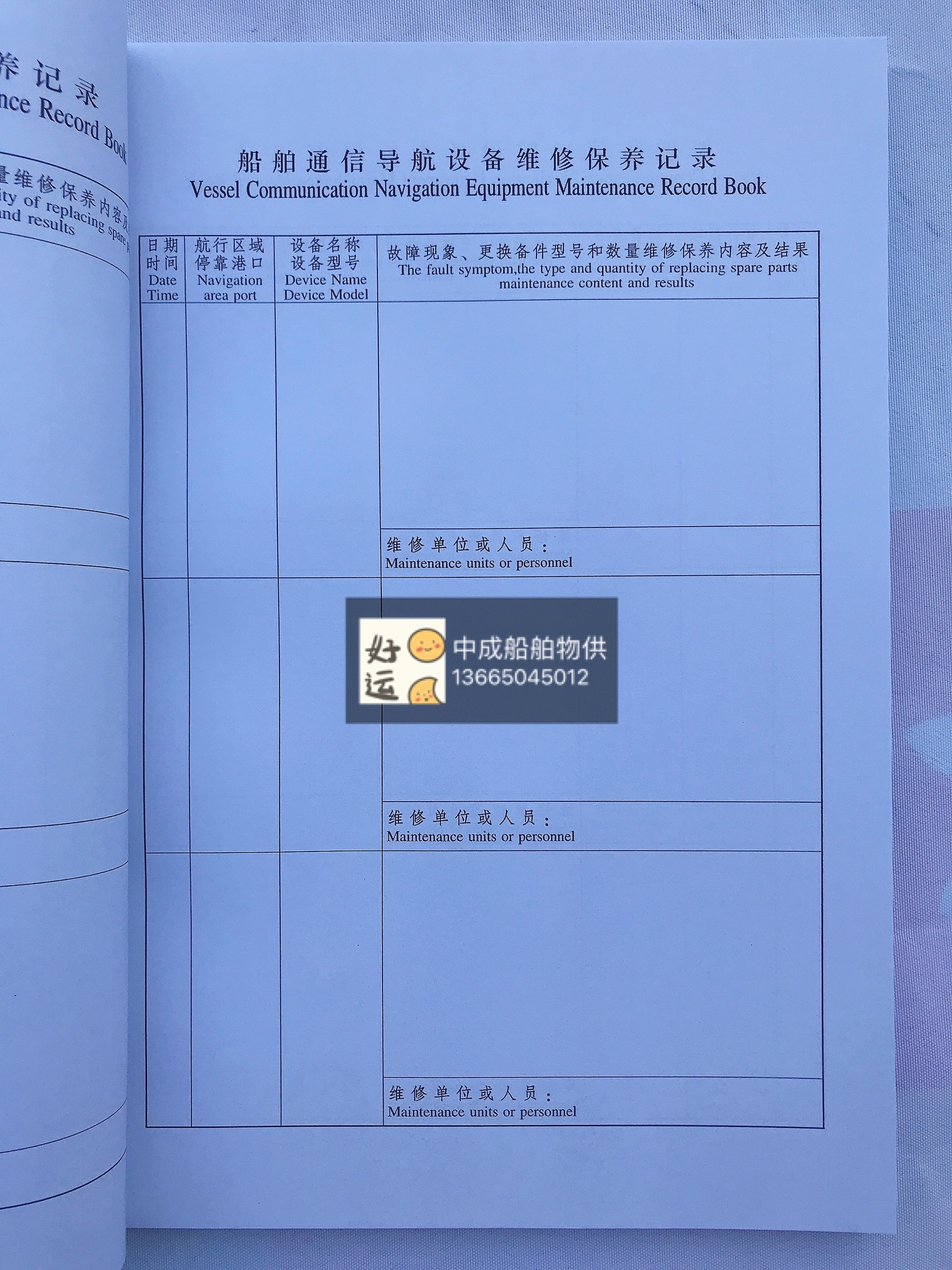 船舶用中英文通信导航设备维修保养记录簿沿海国际航海日志通用本