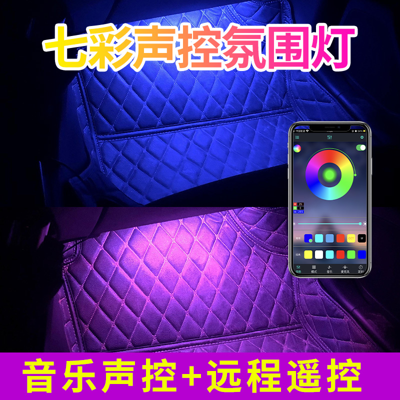 汽车氛围灯车内改装车载LED音乐节奏脚底窝灯条usb免接线感应声控