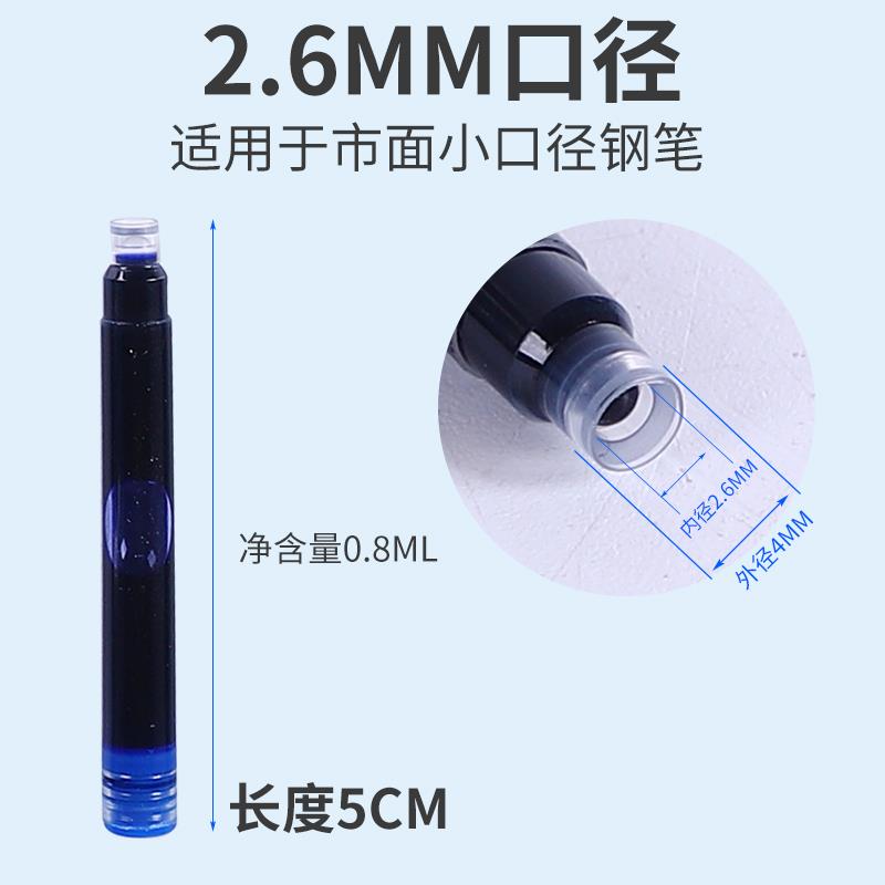 小口径2.6mm细墨囊蓝色可擦墨金属杆钢笔专用蓝黑色小学生用
