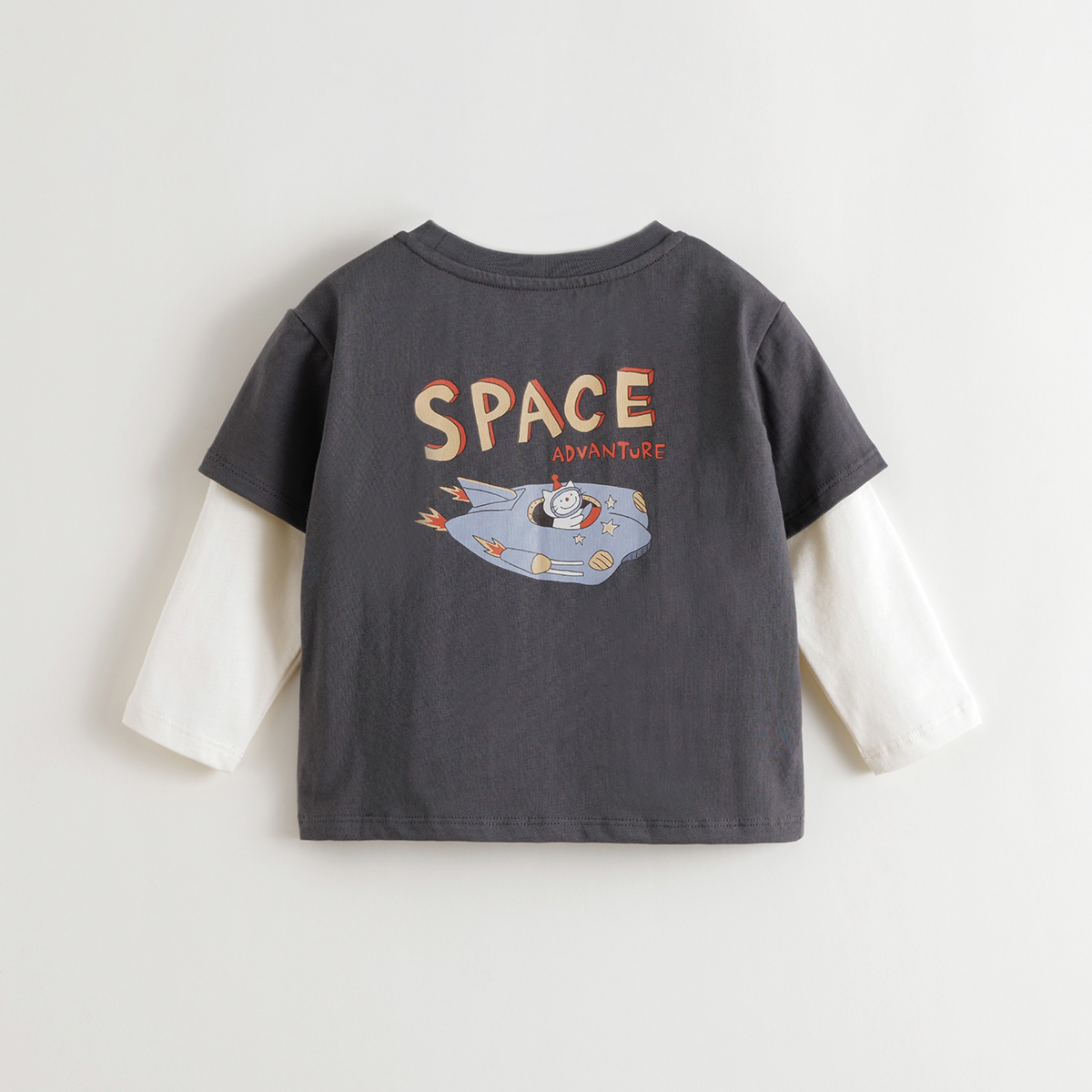 [7A抗菌小魔怪]齐齐熊男童t恤长袖春秋款宝宝假两件纯棉儿童女童