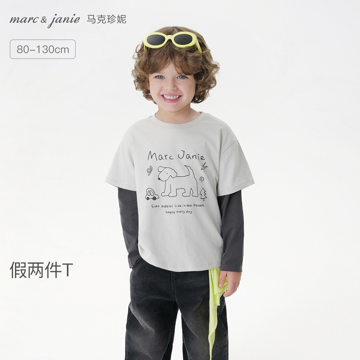 马克珍妮男童猫咪飞行员假两件T恤 宝宝上衣2025年秋装新款551120