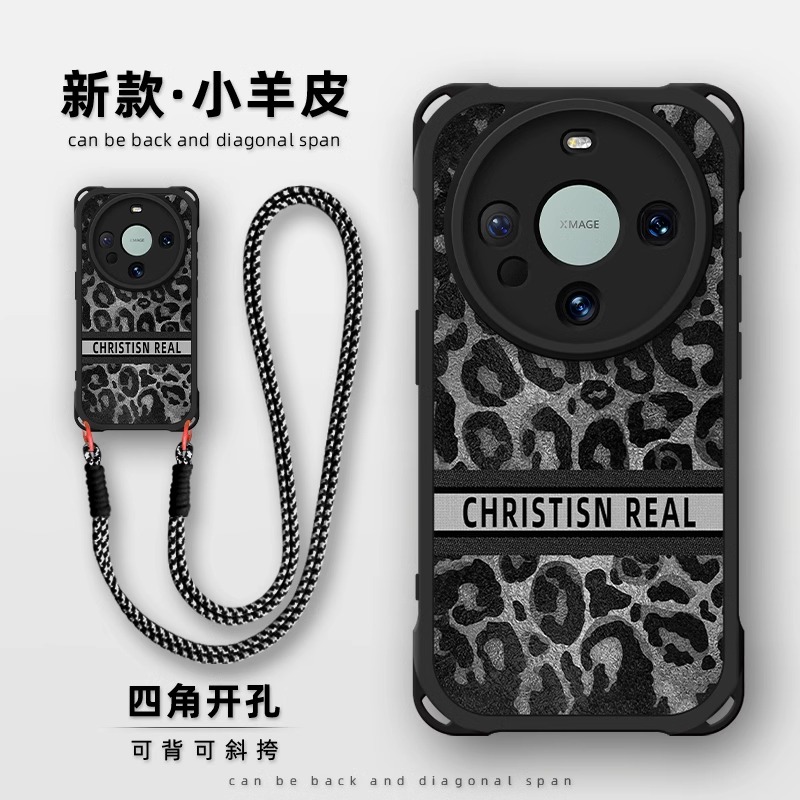 适用华为mate70pro手机壳新款mate60por+四角防摔m50pro硅胶高级感m40豹纹小羊皮长短挂绳50复古全包30软壳