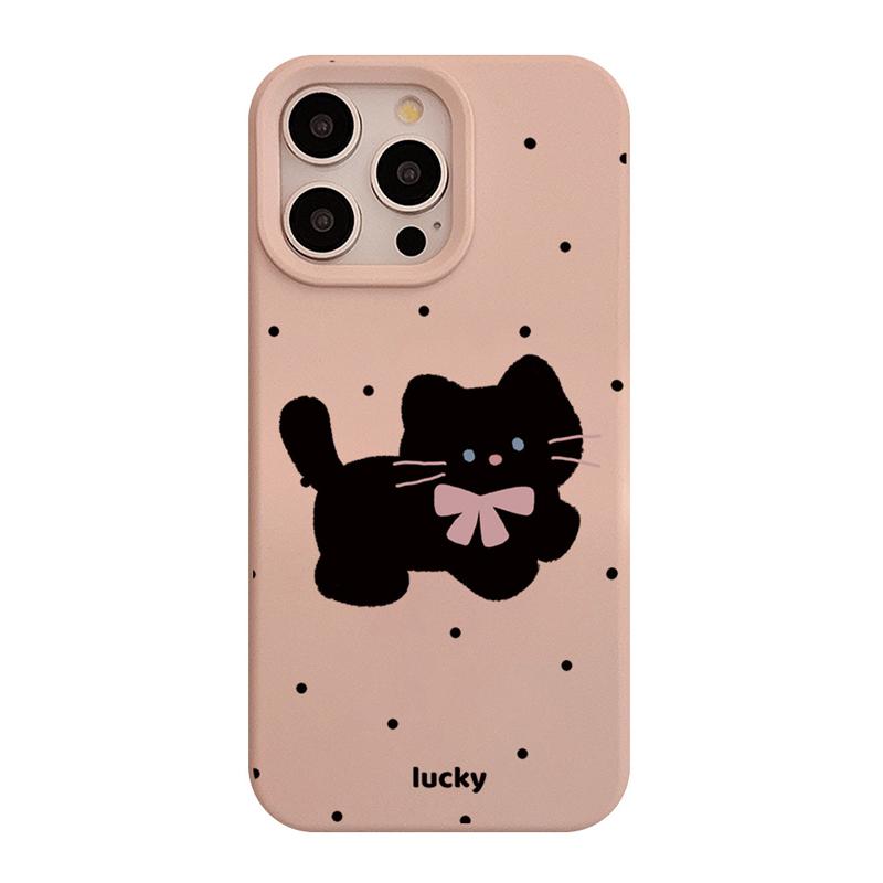 卡通波点蝴蝶结猫咪iPhone苹果手机壳适11/12/13/14/15/16pro max