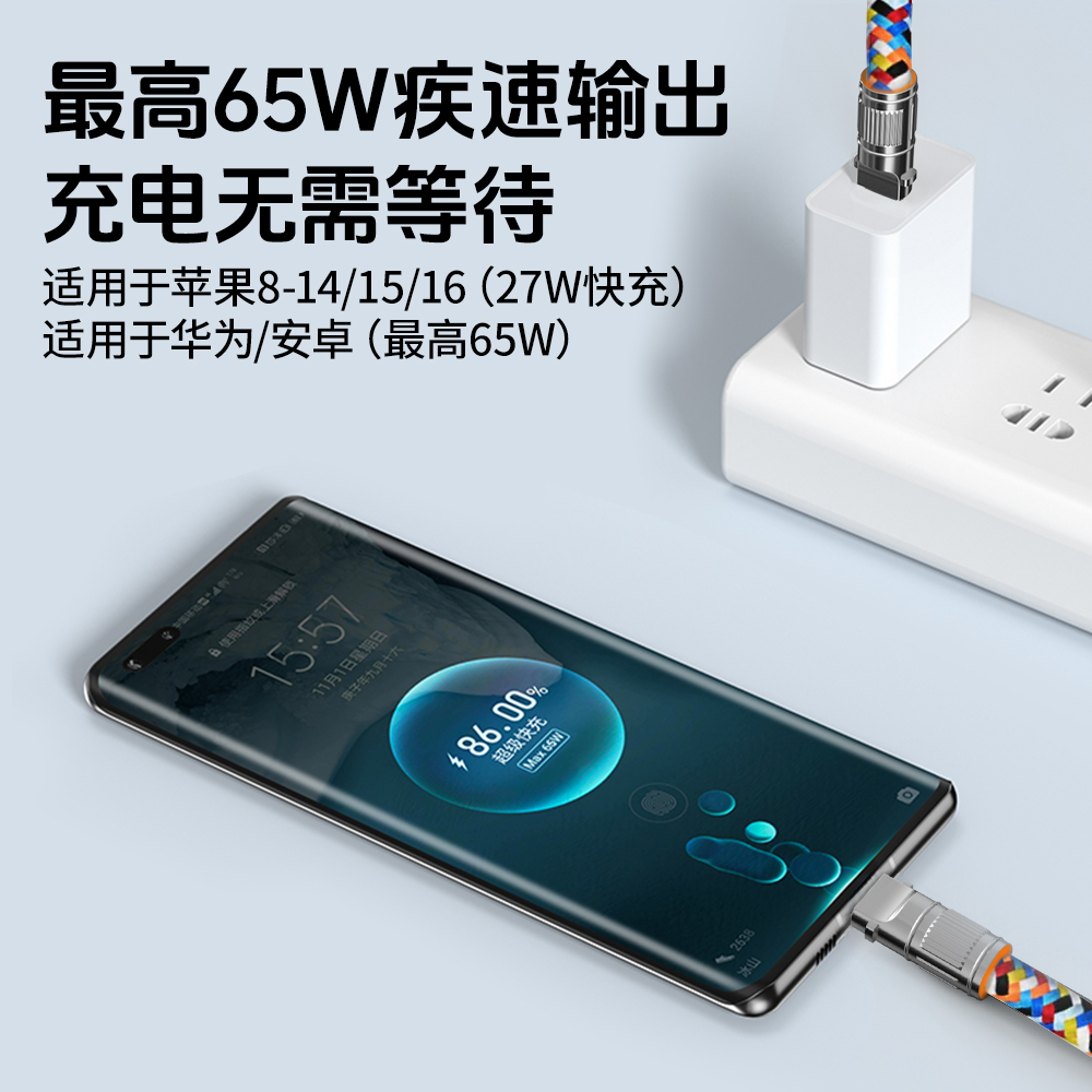 【iPhone17上新首选】倍魔 65W手机挂绳适用苹果iPhone17/16/15/14/13/12promax华为type-c快充数据线斜挎