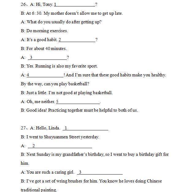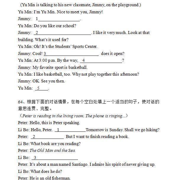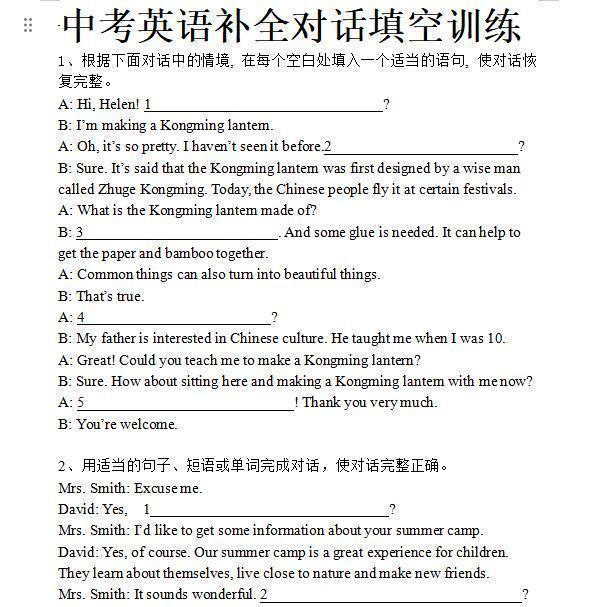 中考英语情景补全对话训练专项作业本练习题100篇答案有解释