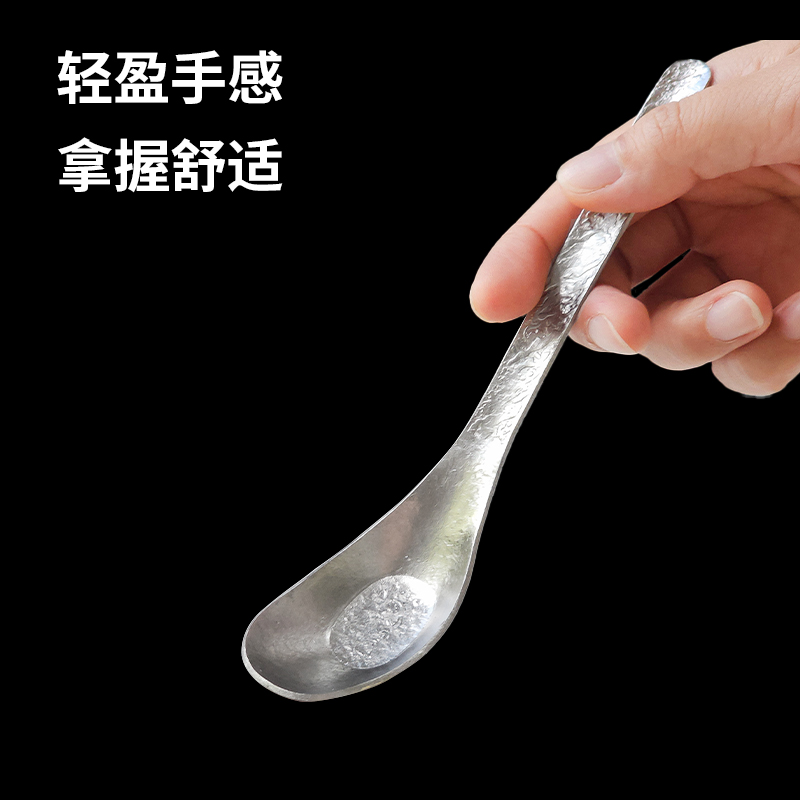 纯钛勺子汤勺中式冰花儿童调羹便携吃饭勺餐具家用露营汤匙加厚