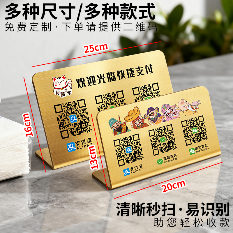 网红收款码定制微信支付宝二维码展示牌收钱摆台服装店商家扫码添加好友打印制作收付款桌面广告立式牌子订制