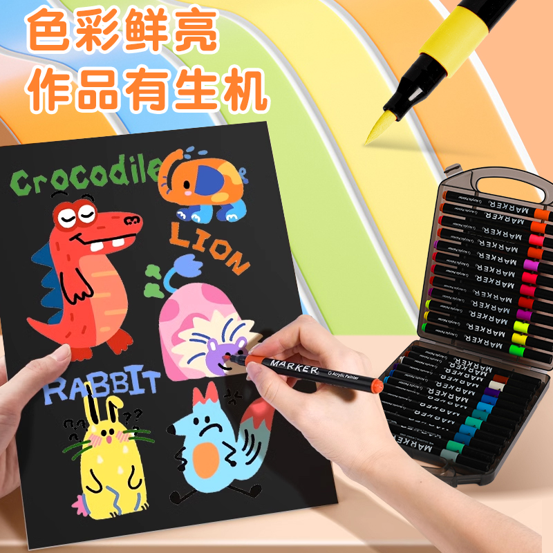 60色48色大容量丙烯马克笔盒装儿童专用可叠色不透纸幼儿园学生版软头丙烯笔可水洗水性水彩笔小孩画画笔