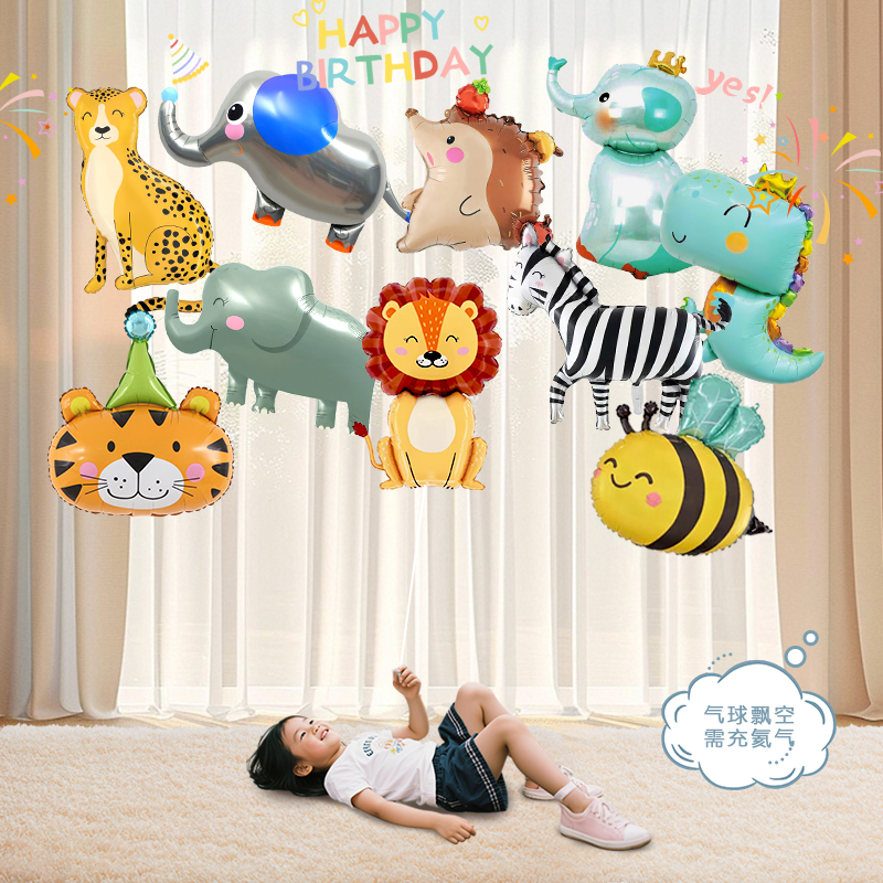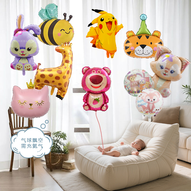 2025卡通动物铝膜气球飘空婴儿绑腿追视氦气罐小月龄儿童无毒无味