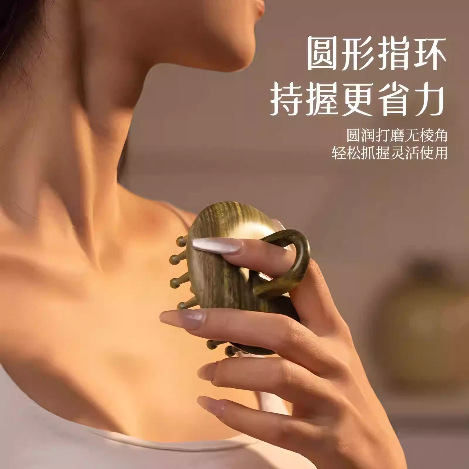 圆盘指环绿檀木抓头皮疼缓解疗部按摩经络刮痧梳便携木梳家用神器