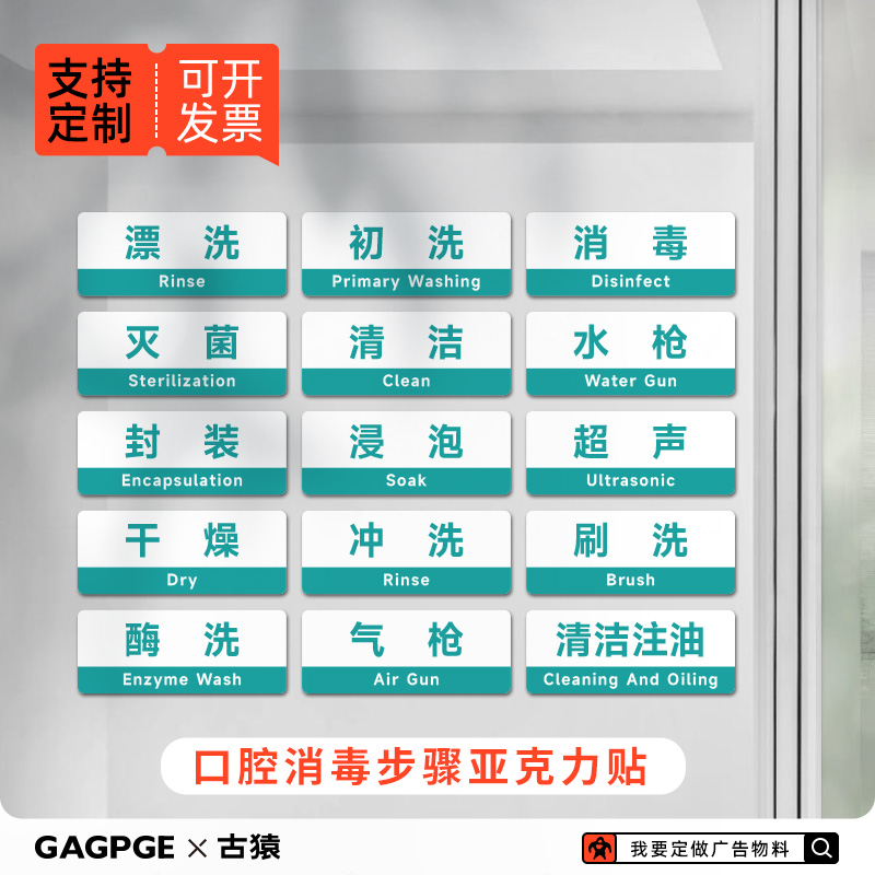 口腔牙科诊所器械清洗消毒步骤墙贴医院初洗浸泡酶洗灭菌标识牌