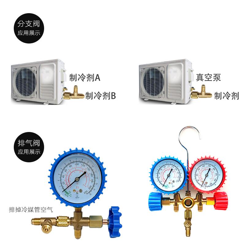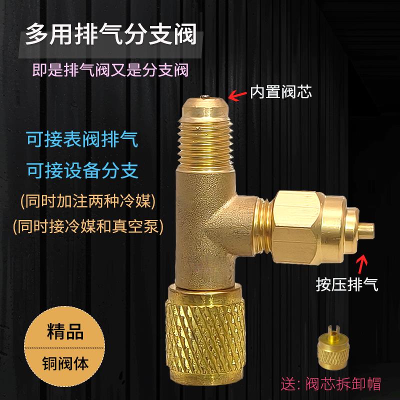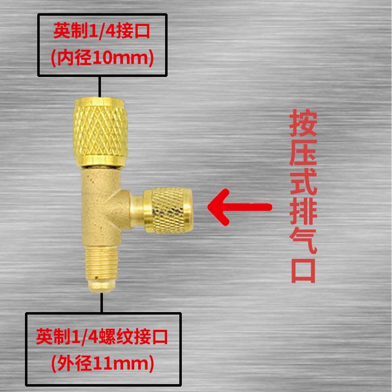 汽车空调加氟表按压排气阀冷媒表排空气三通全铜接头泄压加液工具
