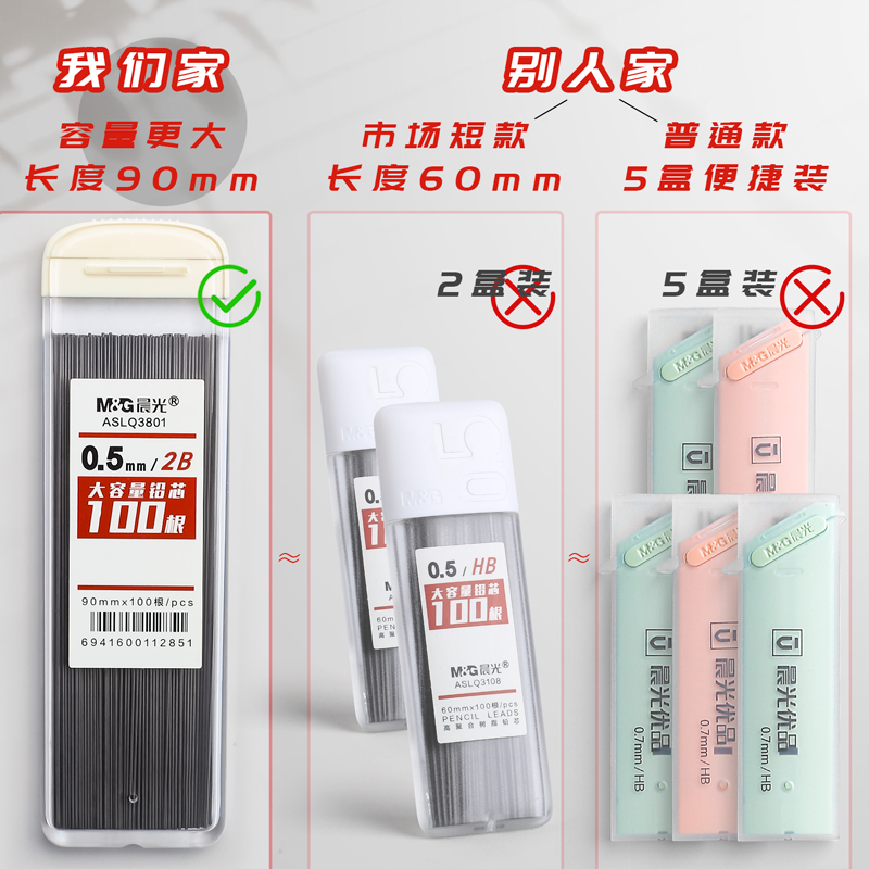 晨光铅芯hb/2b自动笔笔芯0.7mm的笔芯铅心0.5学生用不断铅活动制
