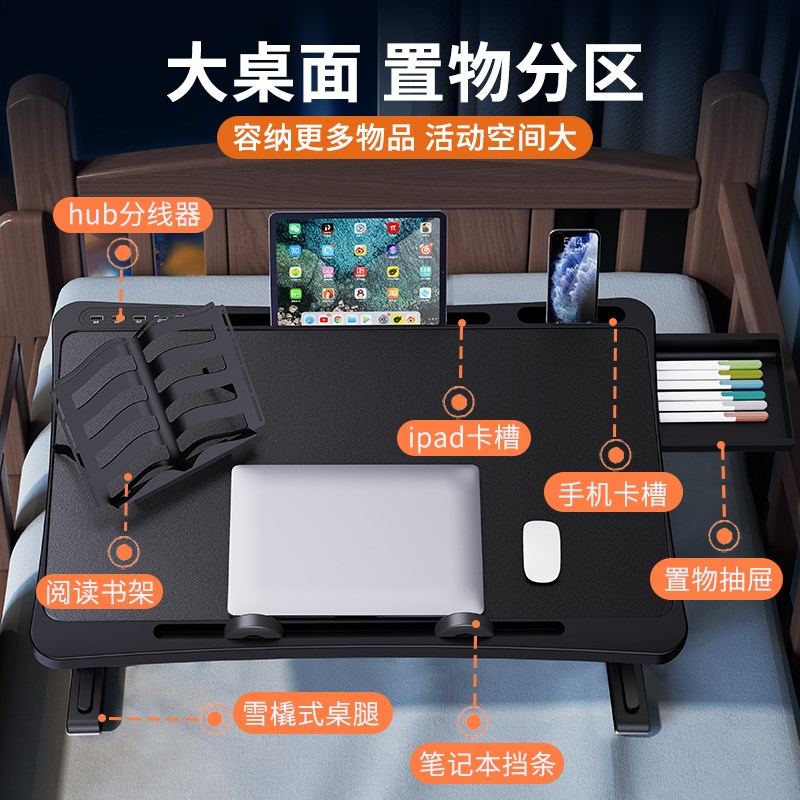 床上小桌子带hub分线器可调节升降F笔记本折叠支架躺式电脑托架放