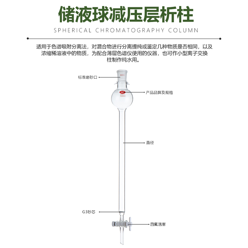 现货球形层析g柱具砂芯玻璃层析柱 离子交换过滤柱 标口硅胶四氟