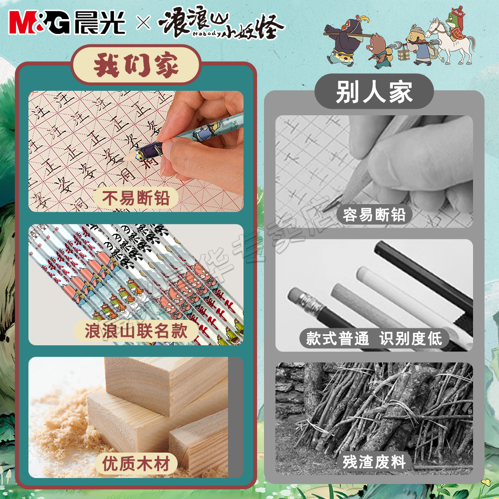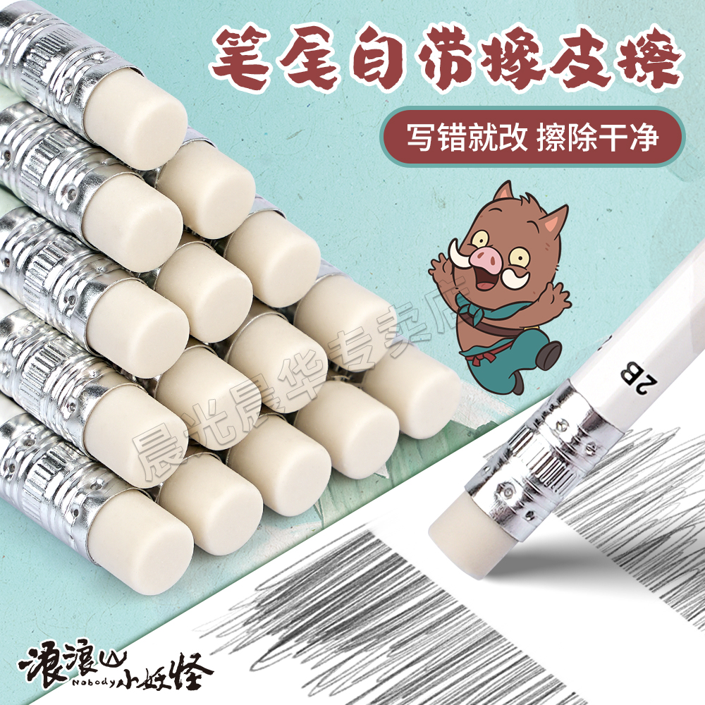 晨光2B铅笔小学生专用一年级二年级无毒不易断芯HB幼儿园初学者儿童铅笔带橡皮擦头浪浪山的小妖怪周边文具