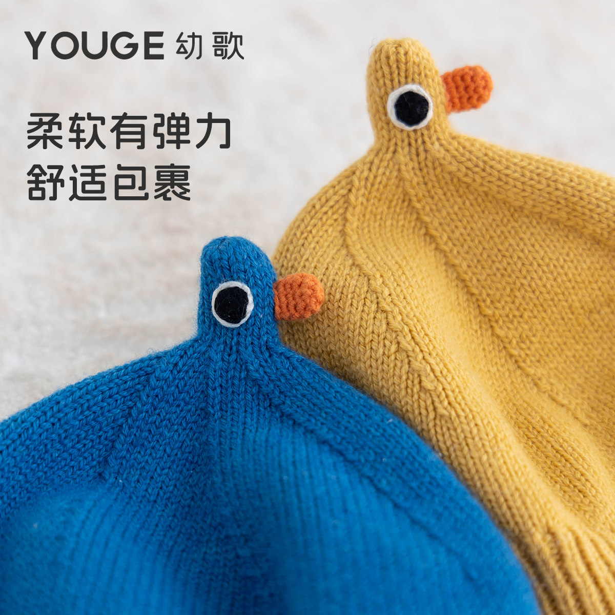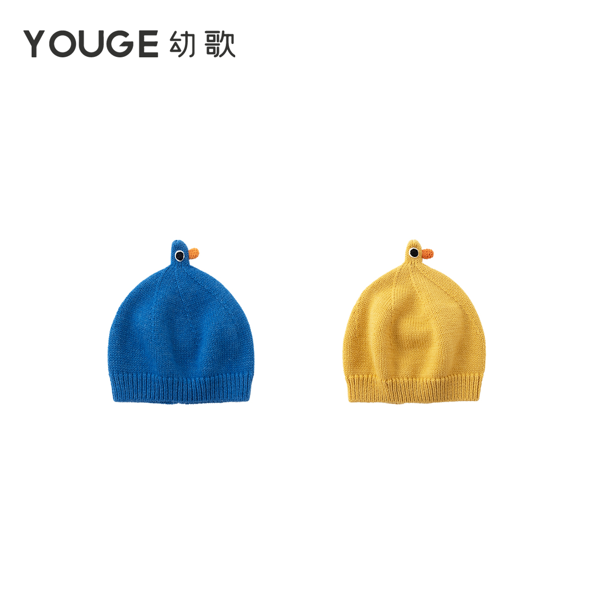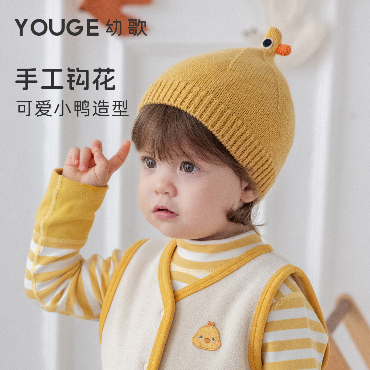 YOUGE幼歌 婴幼儿秋季新款手工钩花含羊毛温暖亲肤舒适小鸭针织帽