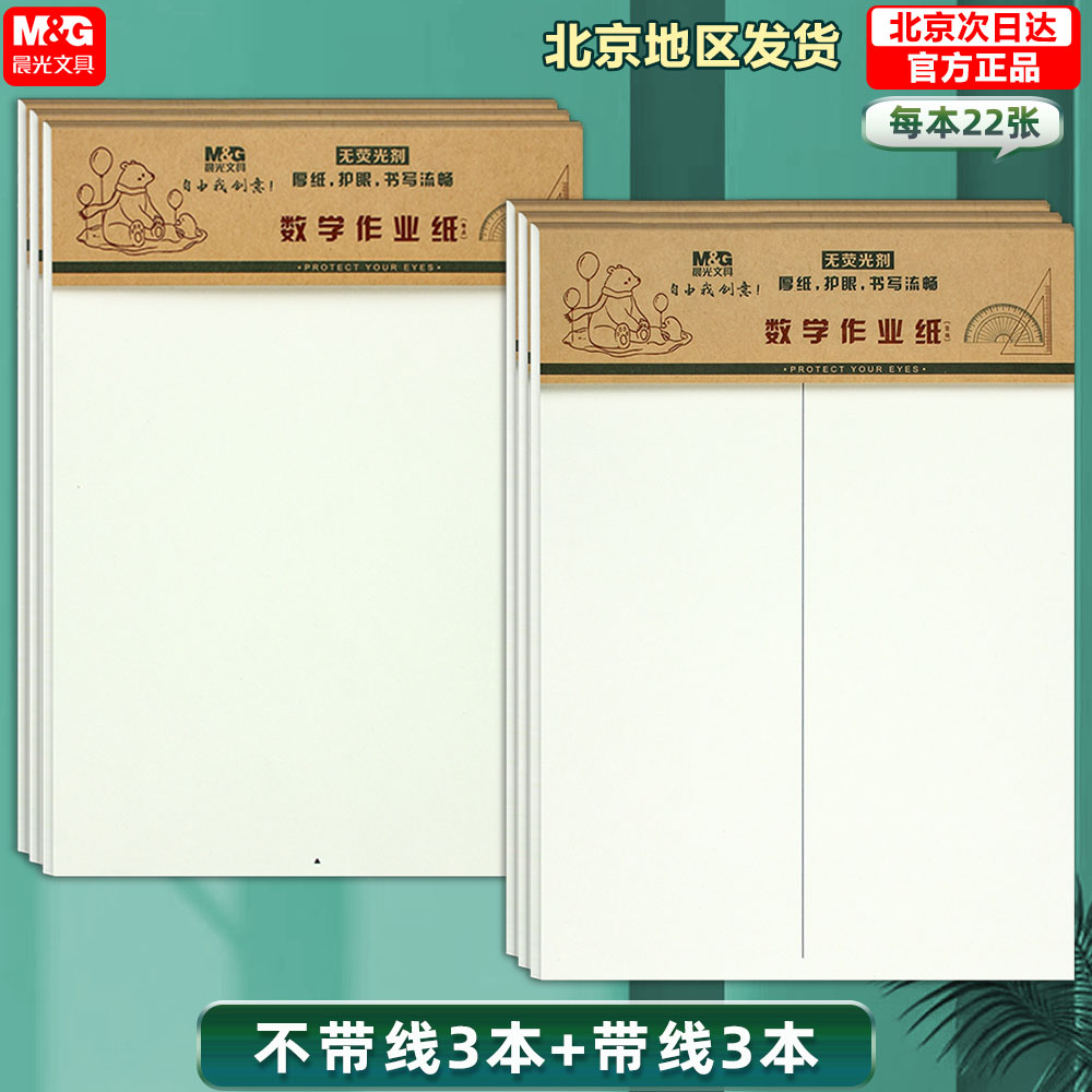 晨光16K数学作业纸 小学生带线数学纸1-6年级空白稿纸草稿纸本子