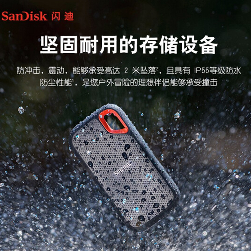闪迪E61固态移动硬盘2t三防便携ssd外接1tb大容量手机电脑两用