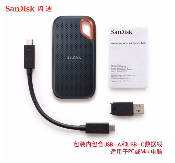闪迪1TBType-c移动固态硬盘E61极速移动传输速度1050MB/s兼容MAC