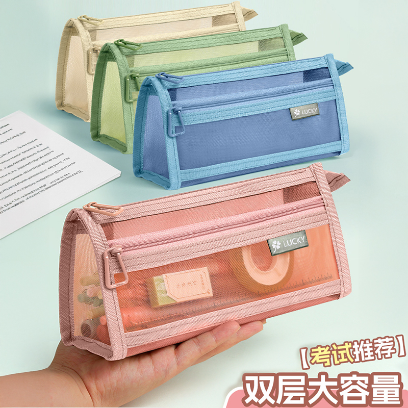 透明双层网纱笔袋学生考试文具袋立体大容量文具盒儿童铅笔袋男女孩款2025新款高颜值便携简约收纳袋蓝色绿色