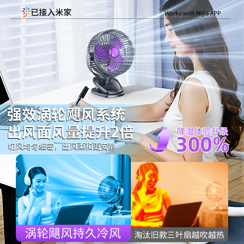 【已接入米家APP】小风扇桌面静音办公室桌上usb充电制冷学生宿舍床上超强力长续航婴儿车载夹扇小型2025新款