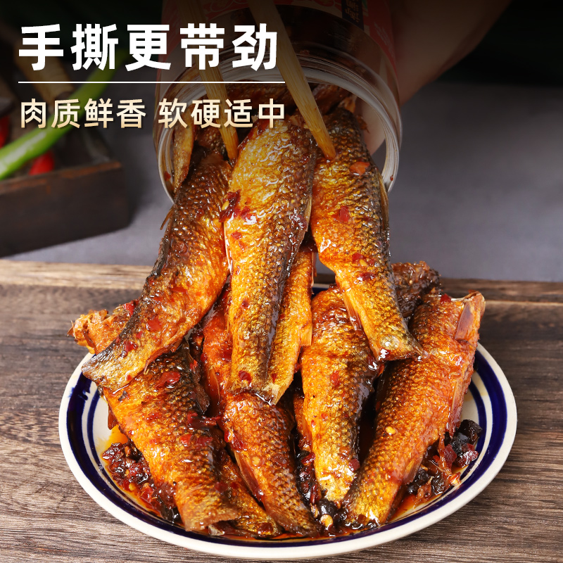 湖南长沙特产农家香辣手撕鱼即食辣椒酱下饭菜零食280g*1罐瓶装