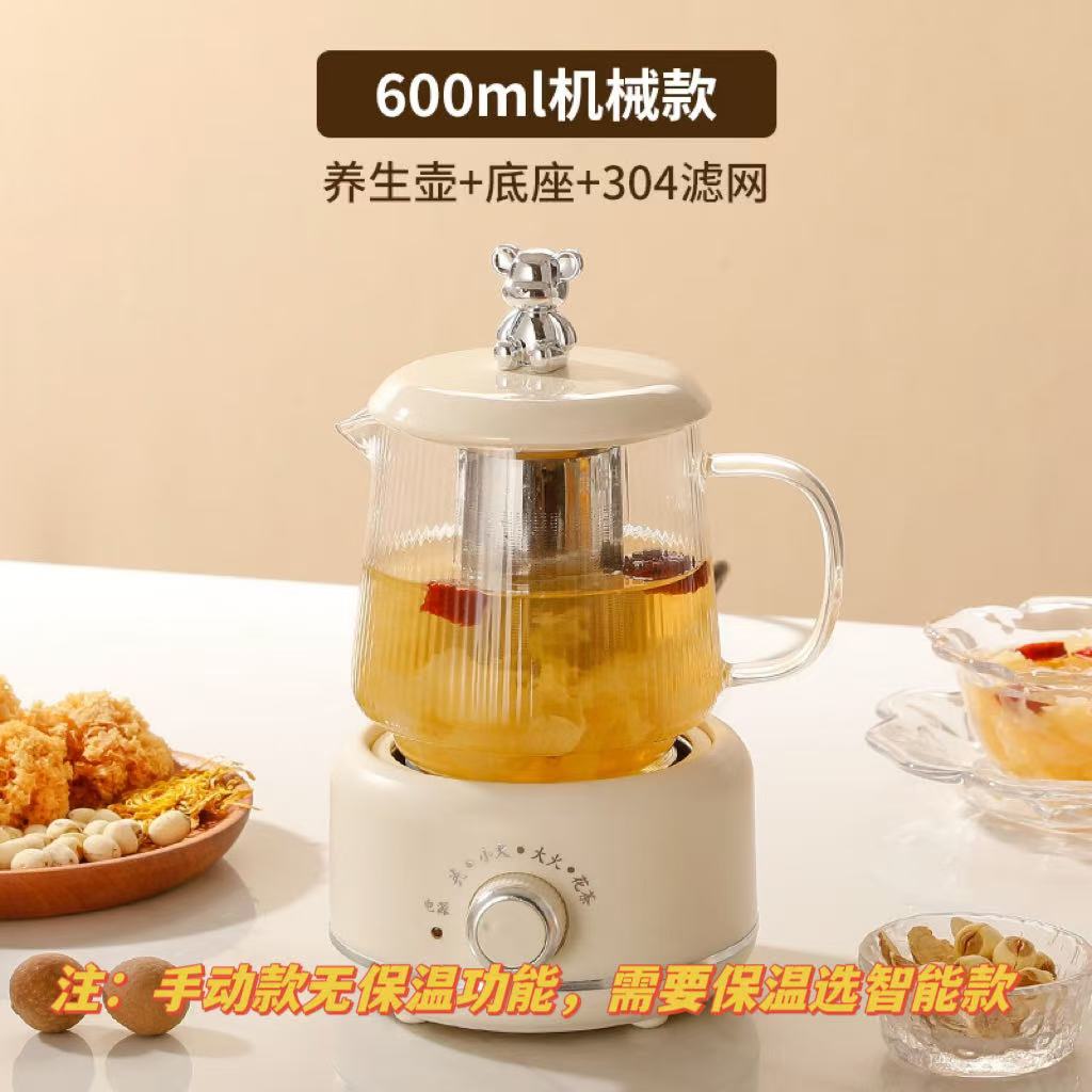 小熊全玻璃恒温养生壶家用多功能办公室小型煮茶壶电热水壶纯玻璃