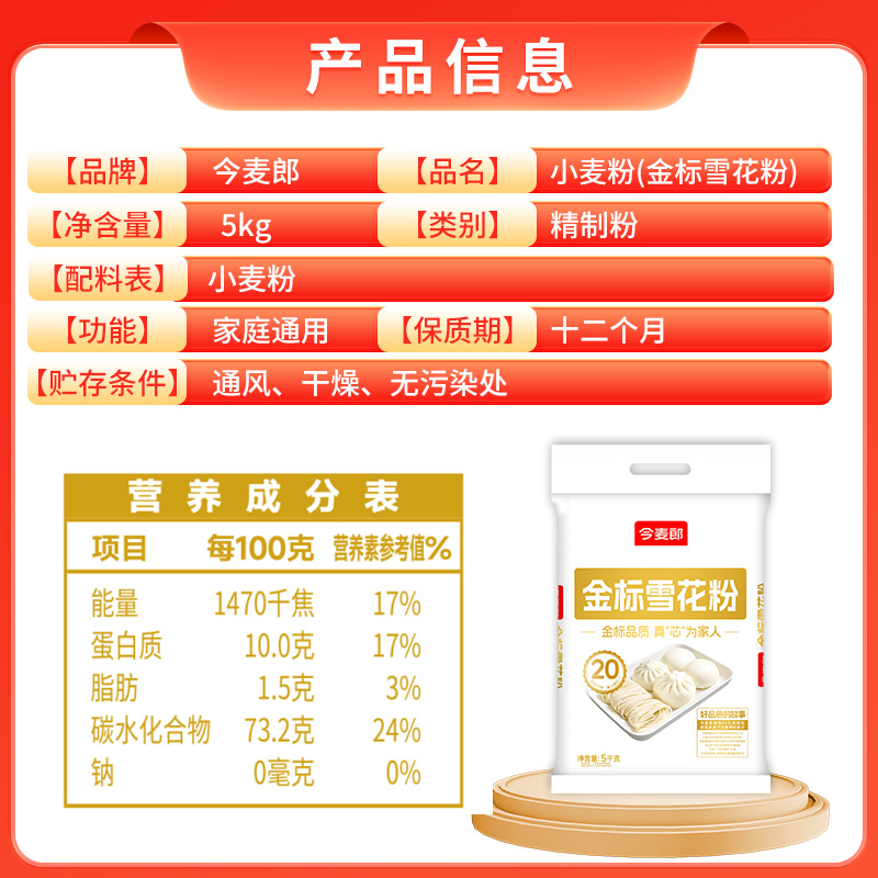 今麦郎面粉金标雪花粉特精小麦粉包子皮中筋5斤/10斤包邮麦芯饺子