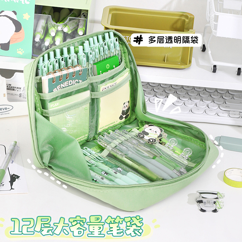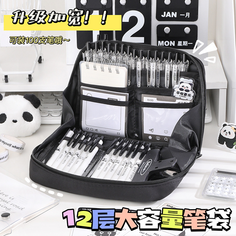 大容量12层熊猫笔袋女孩款小学生初中孩女生颜值文具铅笔盒
