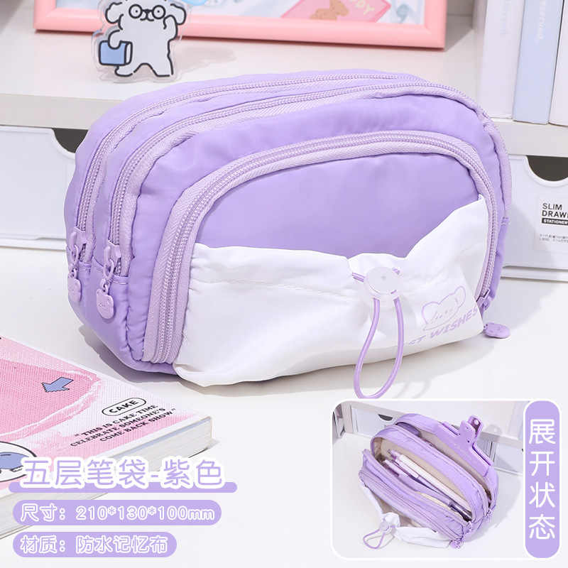 新款简约颜值五层大容量笔袋女生初中伸缩抽绳小口袋文具盒