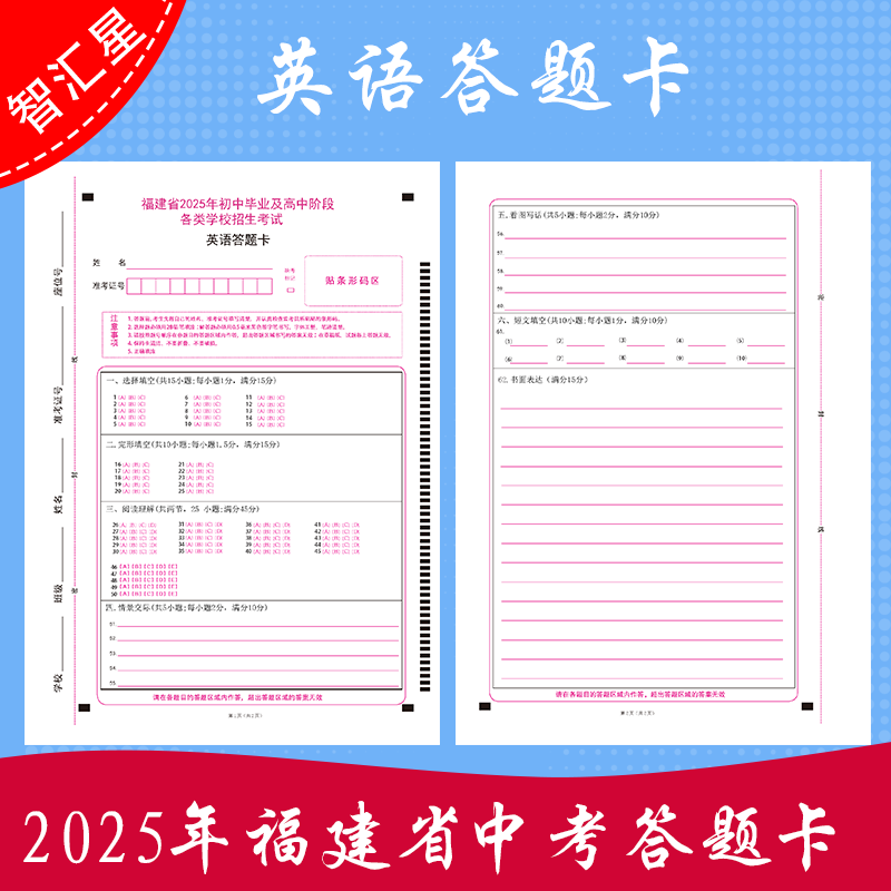 2025年福建省初中学业水平考试语数英物化生政史地中考模拟考试答题卡专用练习 媲美考支持定制 各类答题卡