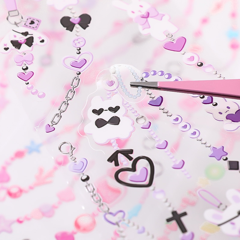 芯陌 高颜值链条系粉色芭蕾风韩系模切胶带 ins风芭蕾风心蝴蝶结细项链蝴蝶咕卡手帐diy素材贴画全套共6款入