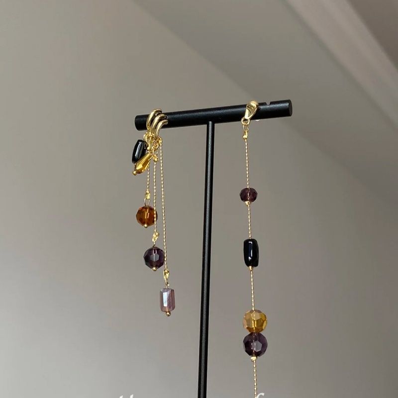 好特别!适合秋冬的耳环棕色串珠不对称耳饰轻奢小众高级感耳钉