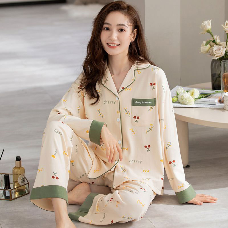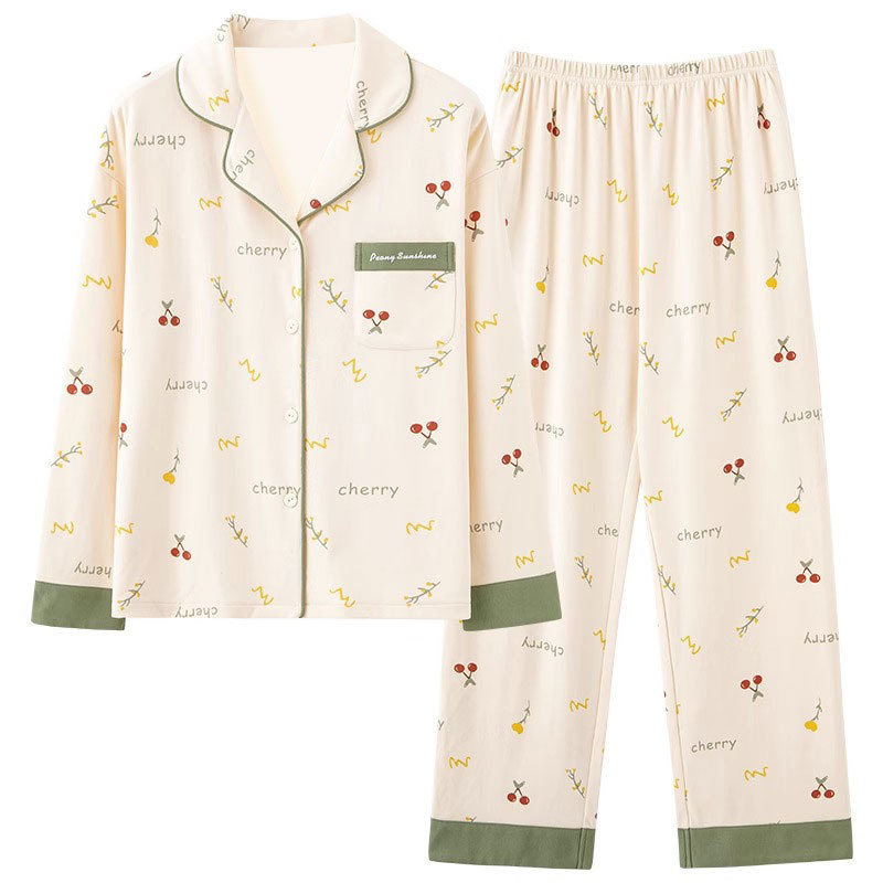 法式慵懒春秋季睡衣女开衫长袖长裤棉柔软舒适宽松大码家居服