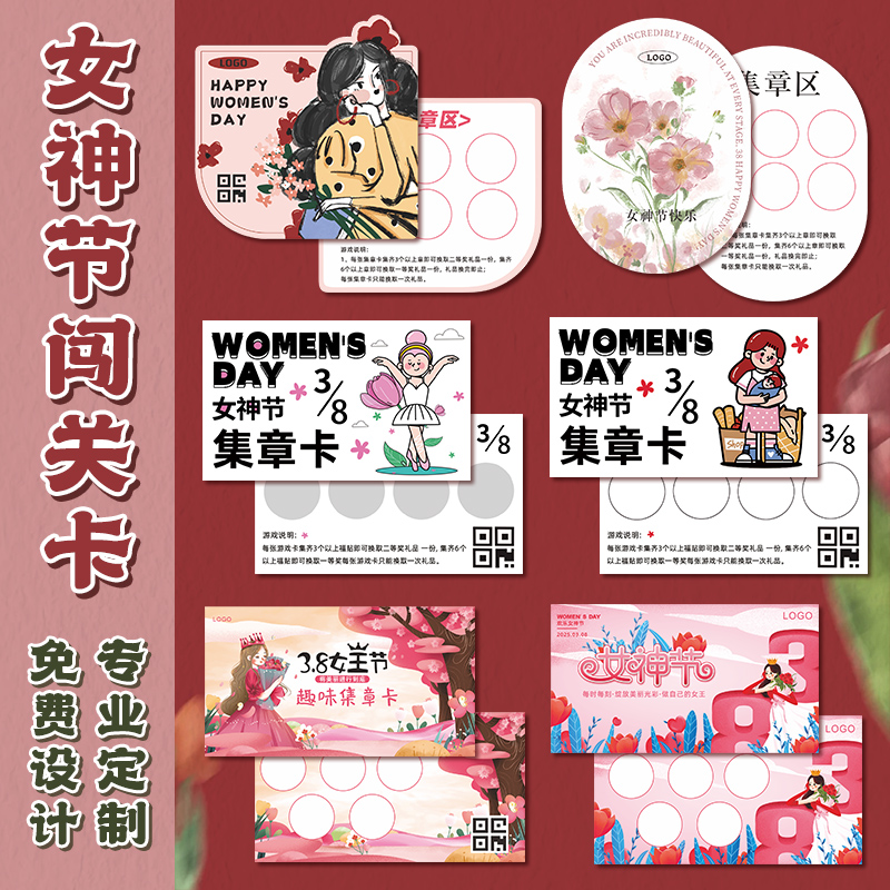 三八节游园集章卡定制公司女生妇女团建活动闯关卡门票会入场券设计打卡盖章收集积分卡纸游戏通关任务卡打印