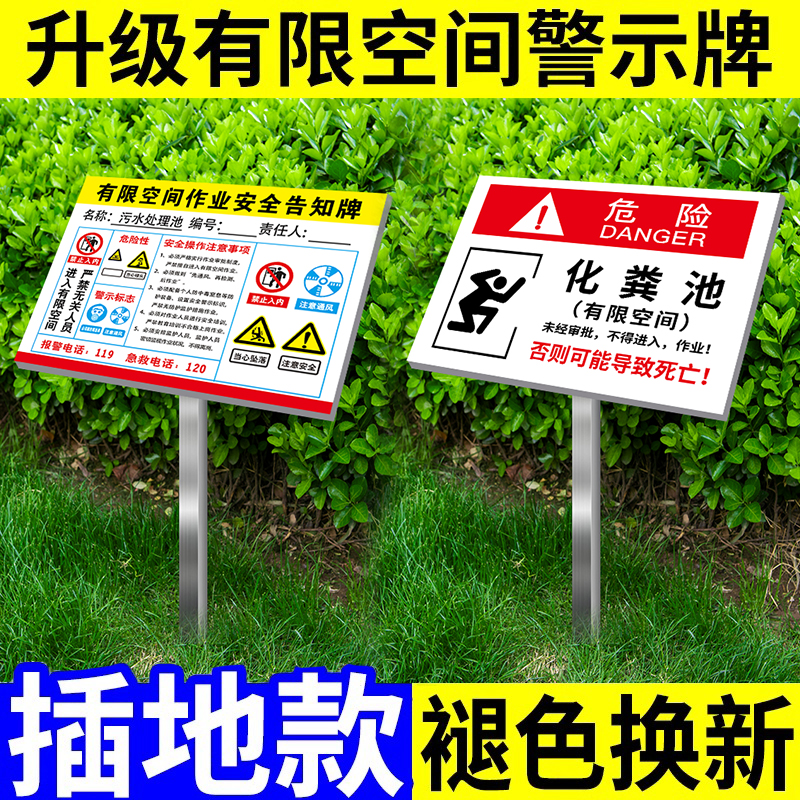 安全风险告知牌插地广告牌定制有限空间安全标识化粪池污水井养殖场定制职业危害安全告知卡警示贴斜面插地式
