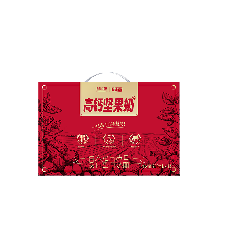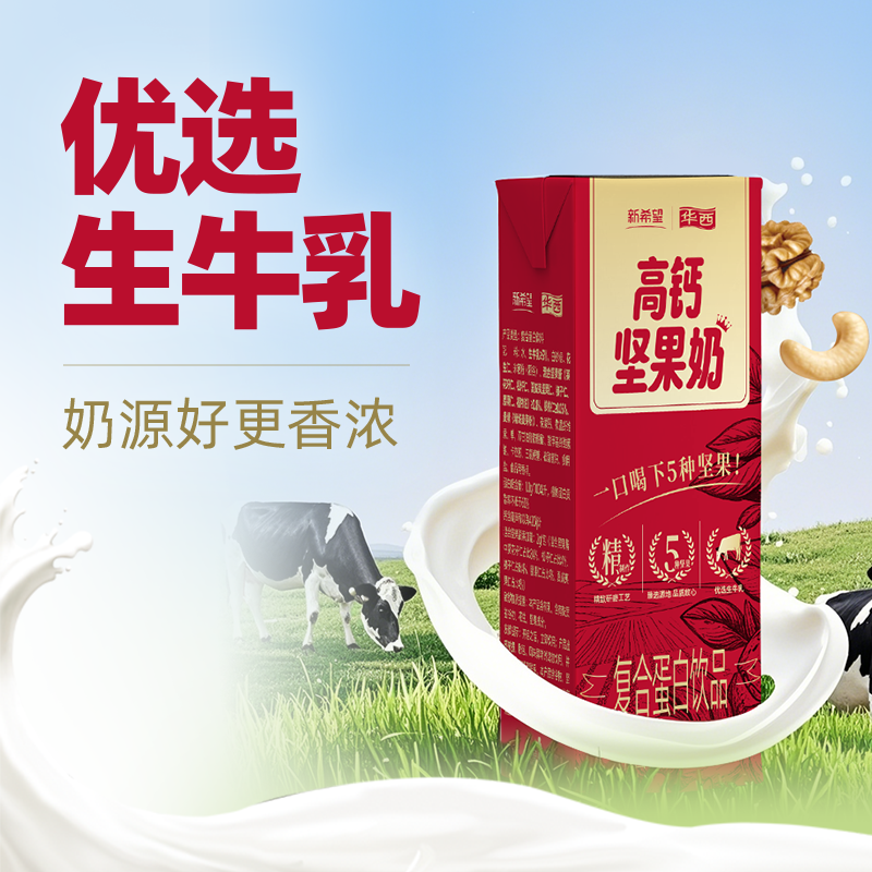 华西新希望高钙坚果奶牛奶250mlx12盒整箱 营养早餐奶