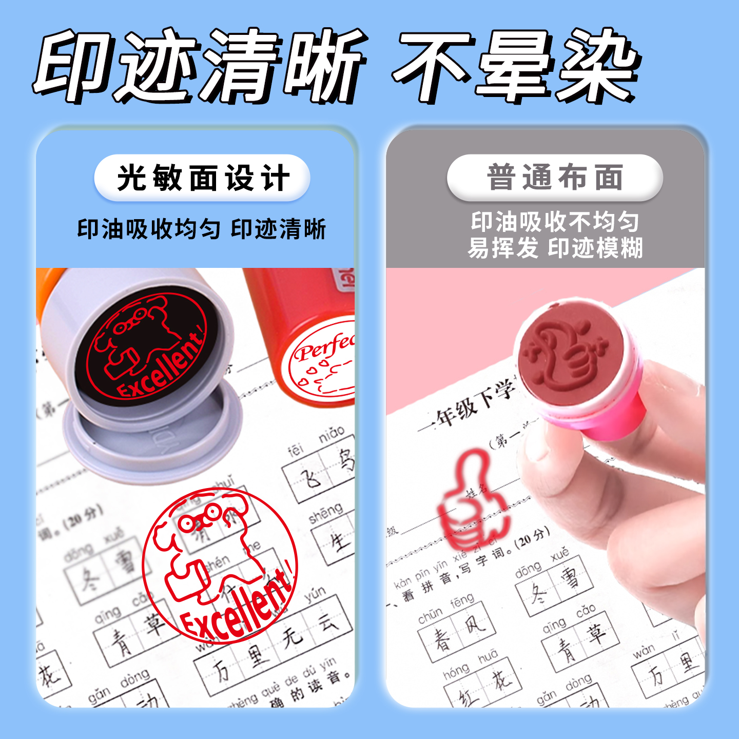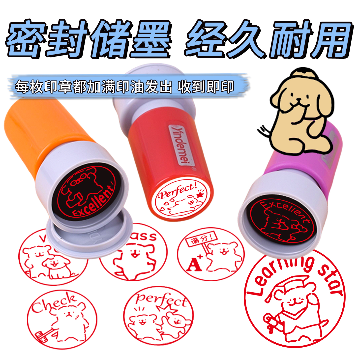 线条小狗英语评语鼓励印章教师用表扬小学生定制批改作业评语双面注油款YDM小圆章幼儿园小学老师奖励印章