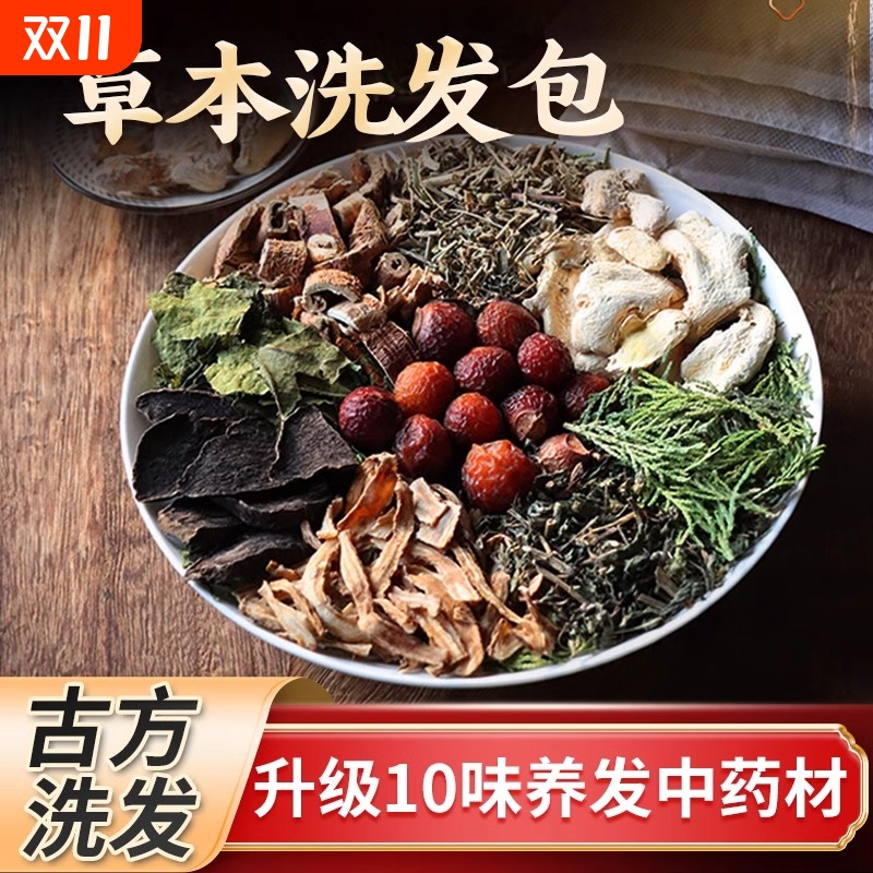 侧柏叶制何首乌干姜皂角无患子中药材粉皂荚洗发水中草药包洗头包