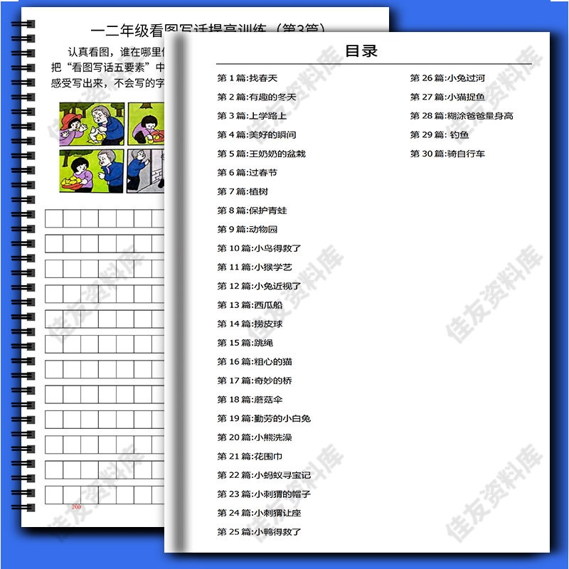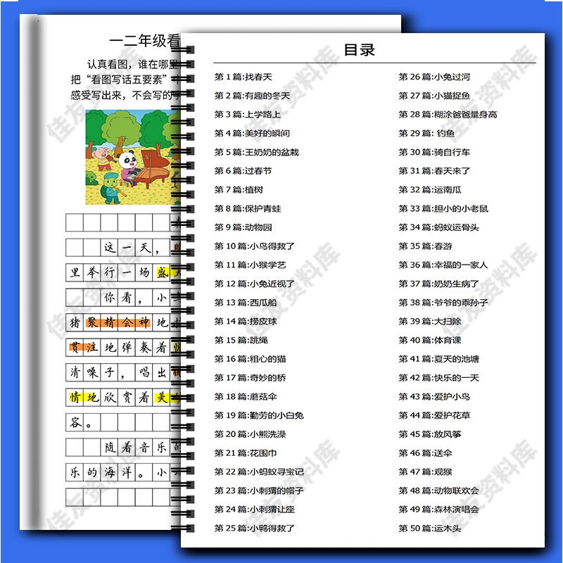 一二年级看图写话范文大全上下册提高专项训练五要素多图每日一练提高训练四五要素50篇书写范文