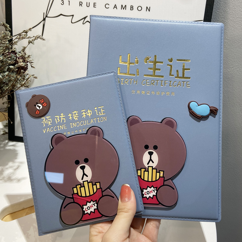 卡通可爱小孩出生证明保护套抖音不折叠宝宝预防接种证外壳小熊男