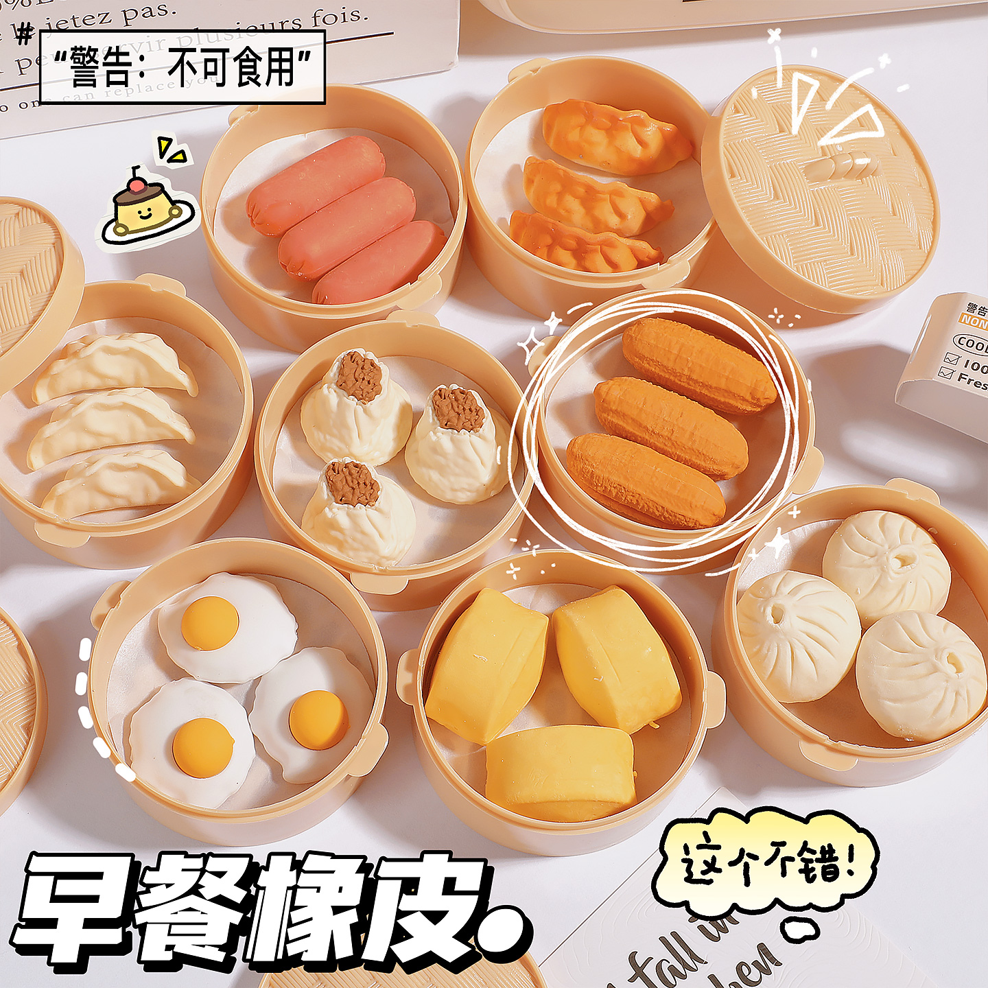 创意仿真小笼包造型食物橡皮擦小学生儿童高颜值搞怪趣味橡皮擦的干净超萌可爱橡皮学生小礼物铅笔橡皮