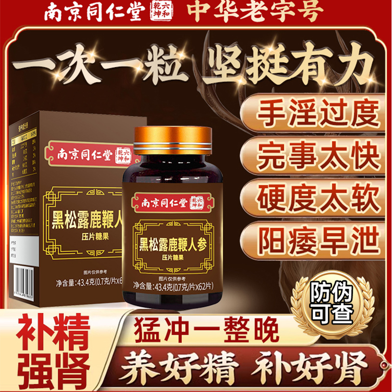 南京同仁堂鹿鞭玛咖牡蛎肽片男人肾精力活力黄精人参男性压片糖果