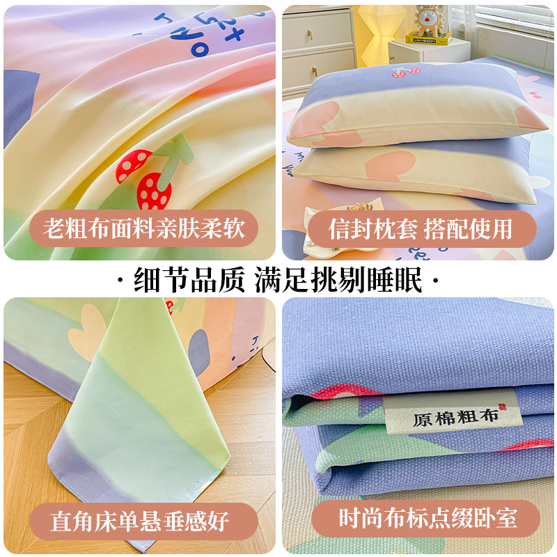 纯棉老粗布床单单件凉席夏季双人100全棉单人宿舍加厚被单三件套