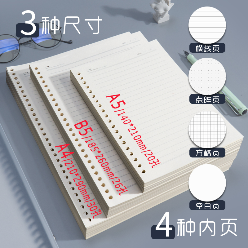 晨光活页本B5横线笔记本子A4方格网格记录本A5多规格可拆卸替芯软壳考研线圈错题本加厚纸张不咯手活页夹高中