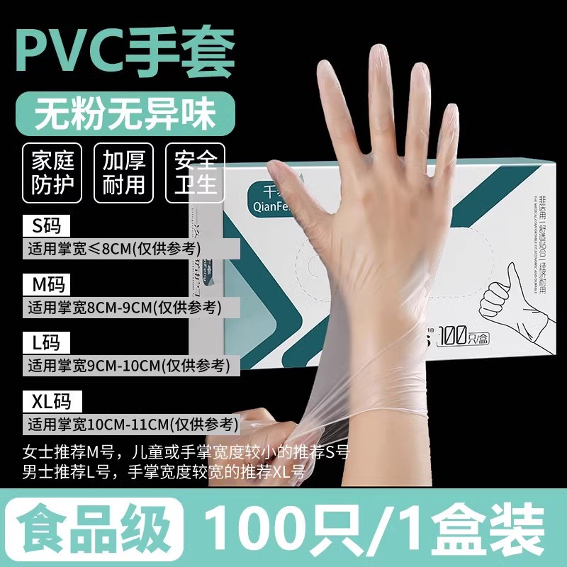 一次性手套商用加厚pvc 防护耐用餐饮做饭烘焙透明薄膜塑料官方