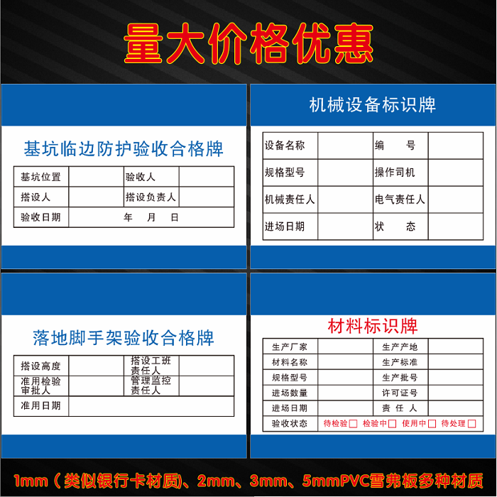 工程机械设备材料半成品物料脚手架卸料平台验收合格禁用标识标牌